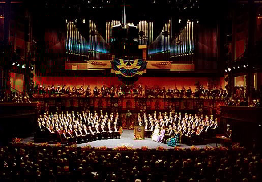 2 (of 12) All 1997 Nobel Laureates on the Stockholm Concert Hall stage.