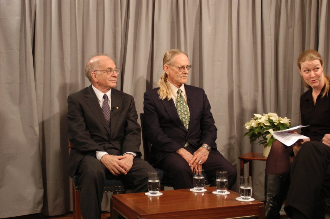 Daniel Kahneman and Vernon L. Smith at the interview in Stockholm, December 12, 2002.