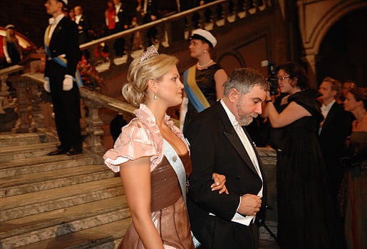 3 (of 15) Paul Krugman arrives accompanied by Princess Madeleine of Sweden to the Nobel Banquet in the Blue Hall of the Stockholm City Hall on 10 December 2008.