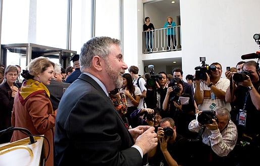 Paul Krugman at his interview with Nobelprize.org in Stockholm, 6 December 2008.