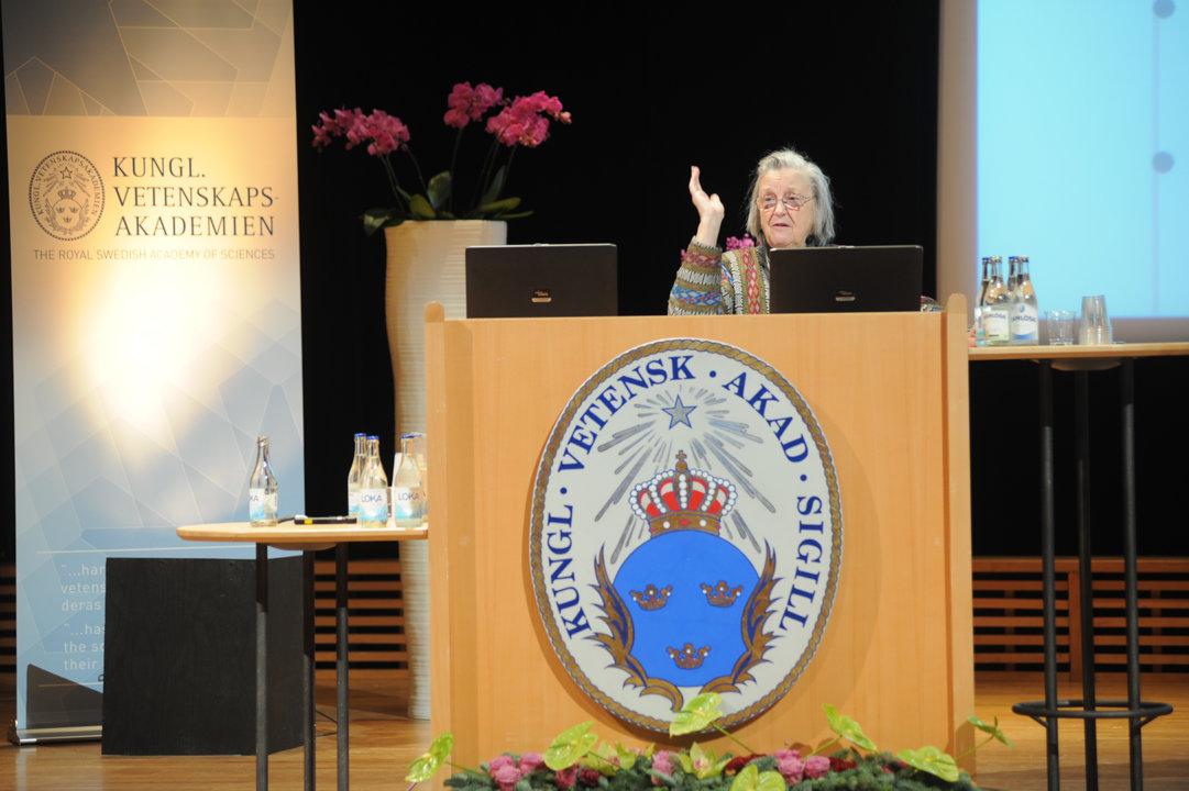 11 (of 18) Elinor Ostrom delivering her lecture at the Aula Magna, Stockholm University, 8 December 2009.