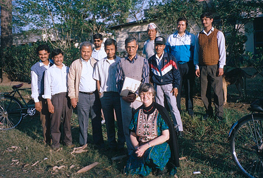 17 (of 18) Elinor Ostrom (front) with members of the Irrigation Management Systems Study Group during field work in Nepal. Photo taken in March, 1993.