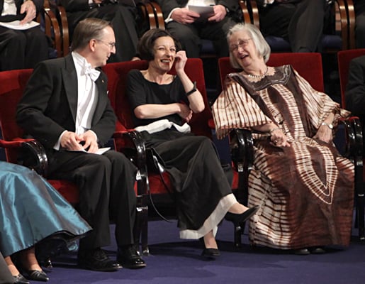 Close-up from the Nobel Prize Award Ceremony (from left to right): Jack W. Szostak, Herta Müller and Elinor Ostrom.