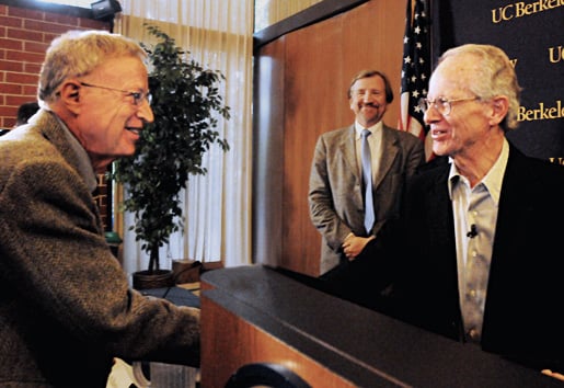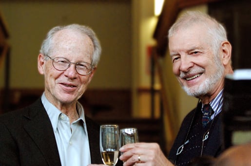 20 (of 21) Oliver Williamson (left) shares a toast with Daniel L. McFadden (left), the 2000 Laureate in Economic Sciences, at a reception at Haas School of Business, UC Berkeley, 12 October, 2009.