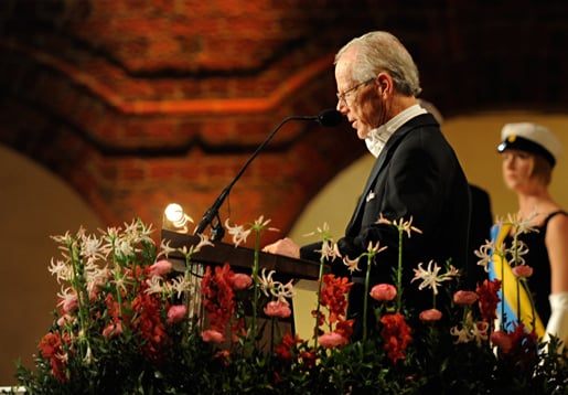 Oliver E. Williamson delivers his banquet speech at the Nobel Banquet in the Stockholm City Hall, 10 December 2009.