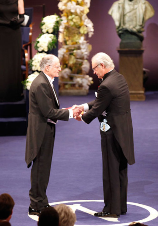 Thomas J. Sargent after receiving his Prize at the Stockholm Concert Hall, 10 December 2011.