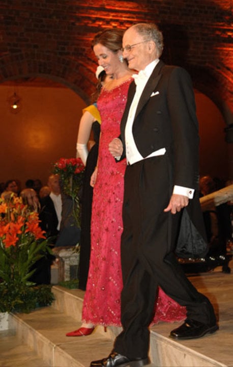 Thomas J. Sargent arrives at the Nobel Banquet accompanied by Filippa Reinfeldt, County Council Healthcare Commissioner.