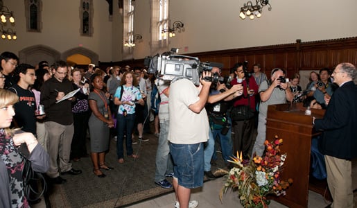 15 (of 18) Thomas J. Sargent addresses the audience at a reception at Princeton University after the announcement of the 2011 Prize in Economic Sciences.