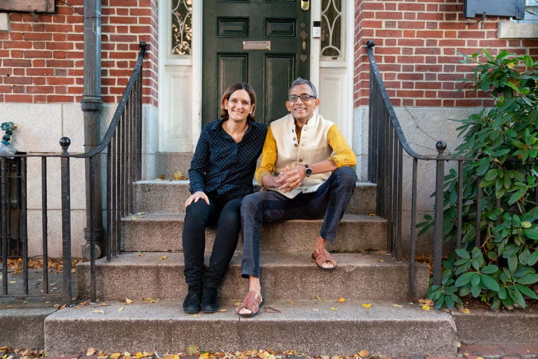 8 (of 8) Abhijit Banerjee and Esther Duflo, outside their home in Boston, 14 October 2019.