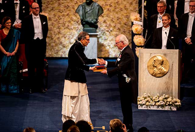 1 (of 8) Abhijit Banerjee receiving his Prize from H.M. King Carl XVI Gustaf of Sweden at Konserthuset Stockholm on 10 December 2019.