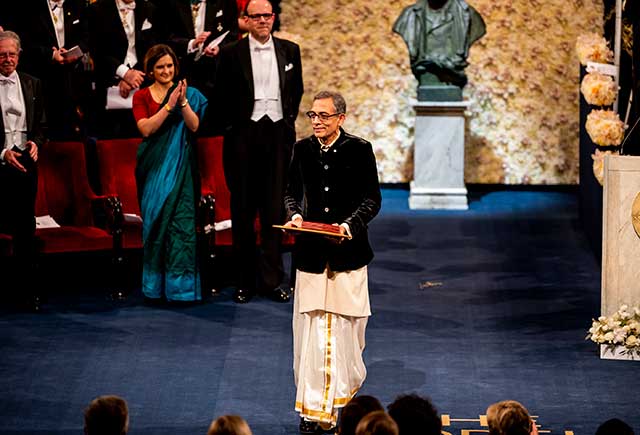 2 (of 8) Abhijit Banerjee after receiving his Prize at Konserthuset Stockholm, 10 December 2019.