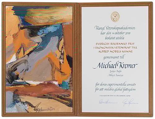MLA style: Michael Kremer – Diploma. NobelPrize.org. Nobel Prize Outreach 2025. Tue. 23 Dec 2025. <https://www.nobelprize.org/prizes/economic-sciences/2019/kremer/diploma/>