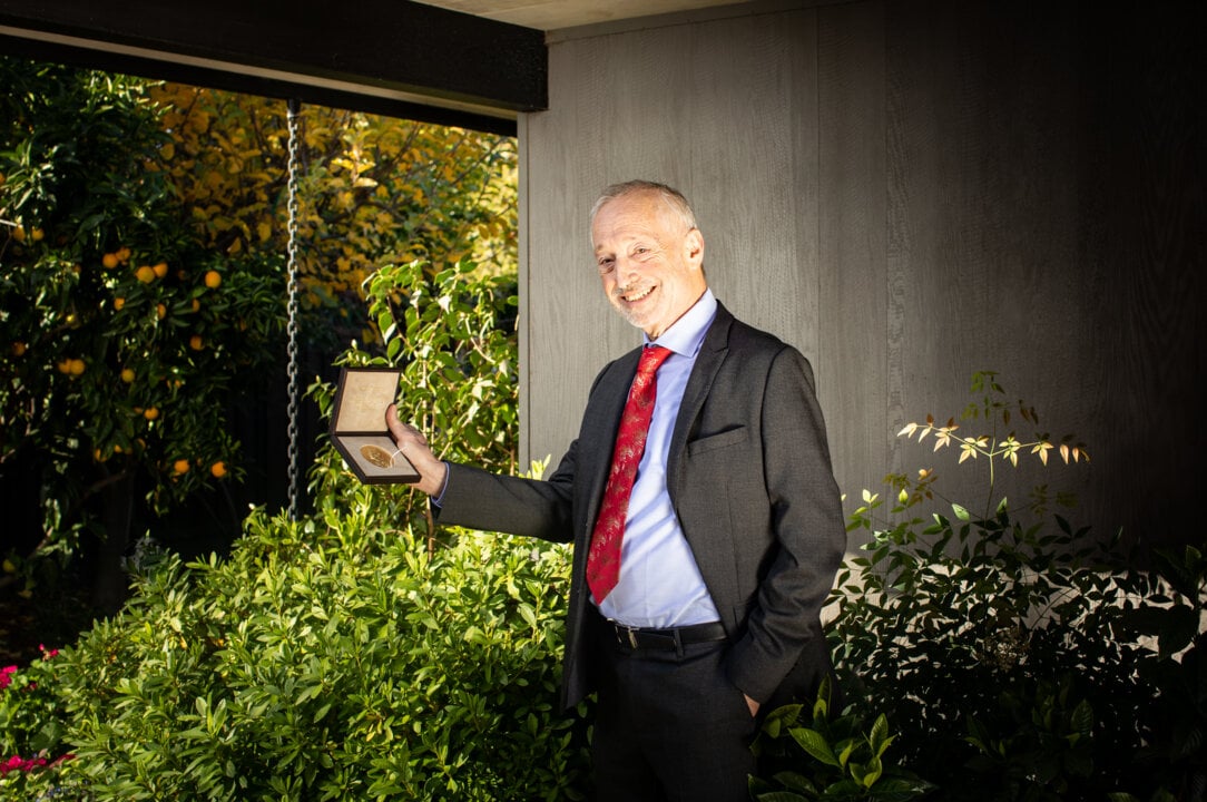 Paul R. Milgrom outside his home in Palo Alto, California, after the announcement of the 2020 Prize in Economic Sciences.