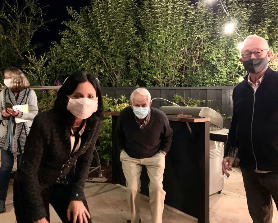 Photo taken at night, after the announcement of the 2020 Prize in Economics. From left: Mary Wilson, Robert B. Wilson, Dr Silvia Console Battilana and Paul R. Milgrom.
