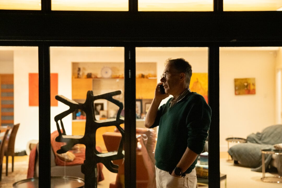 Guido Imbens receiving phone calls on the morning of the announcement of the 2021 prize in economic sciences.