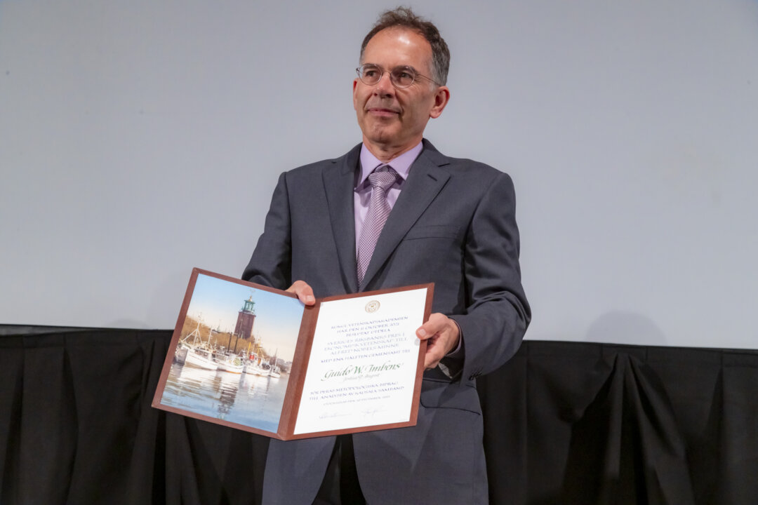 The Sveriges Riksbank Prize in Economic Sciences in Memory of Alfred Nobel medal and diploma were presented to economic sciences laureate Guido W. Imbens at the Beckman Center, National Academy of Sciences, Irvine, USA on 8 December 2021.