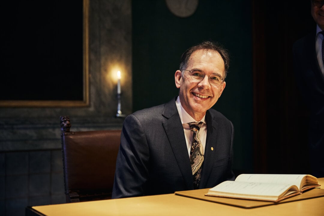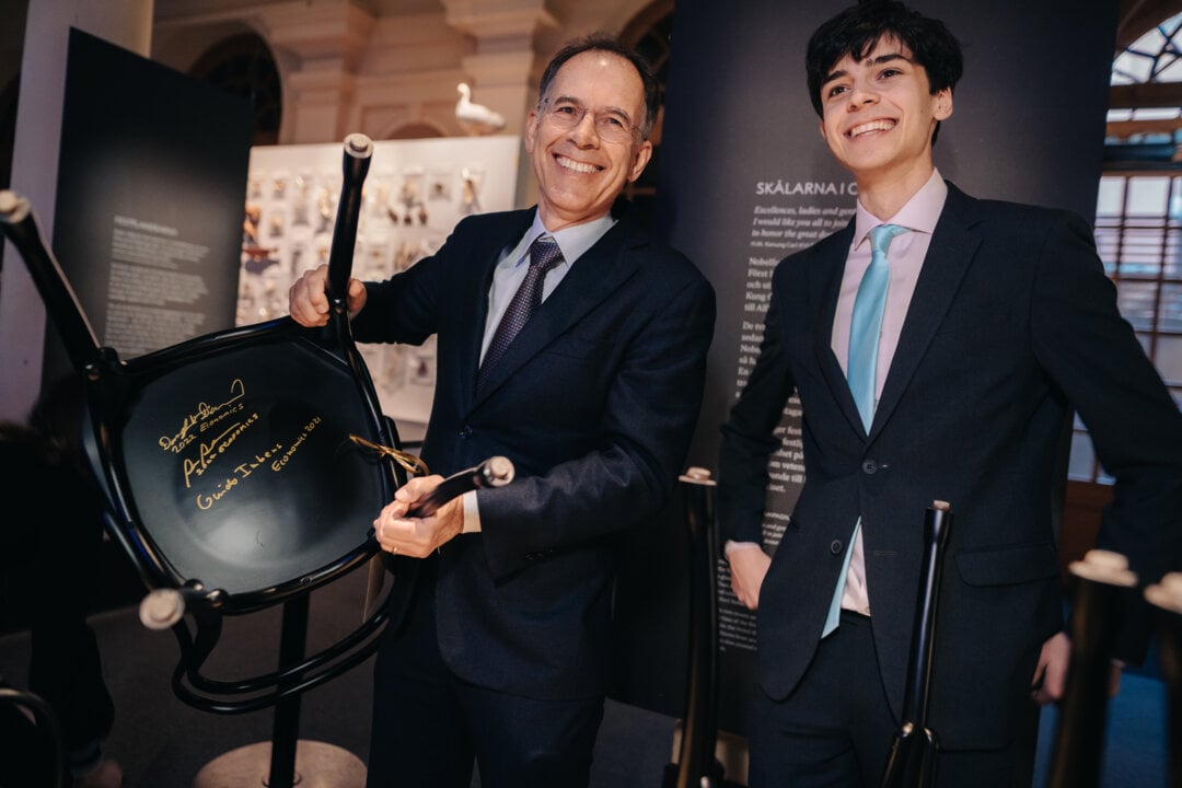 Like many laureates before him, Guido W. Imbens signed a chair at the laureates' Get together at the Nobel Prize Museum in Stockholm on 6 December 2022.