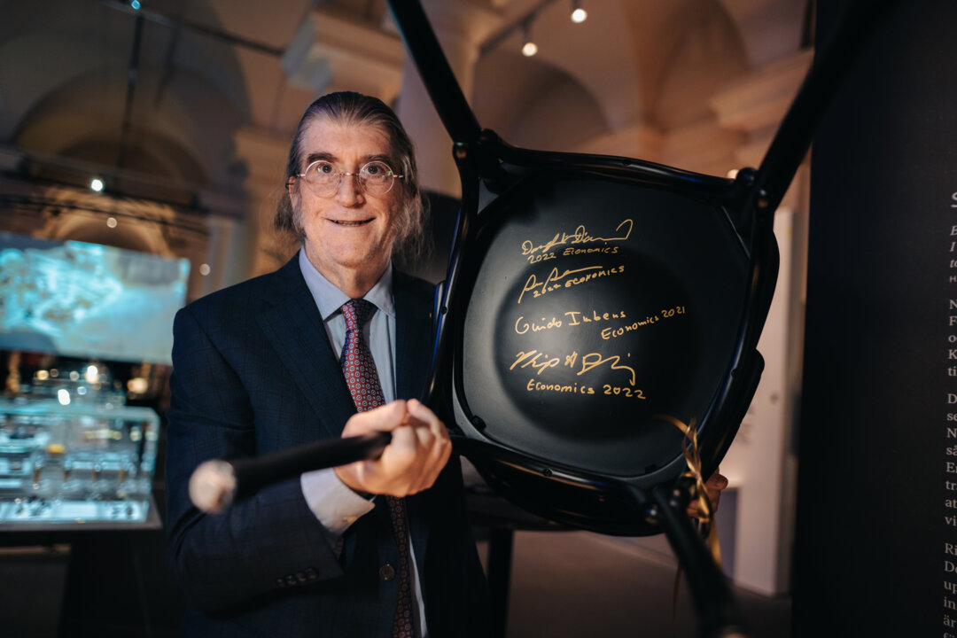 Like many laureates before him, Philip H. Dybvig signed a chair at the laureates' Get together at the Nobel Prize Museum in Stockholm on 6 December 2022.