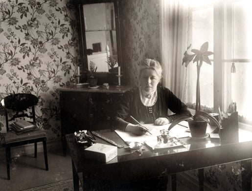 3 (of 5) Selma Lagerlöf with her geese Akka and Yksi.
