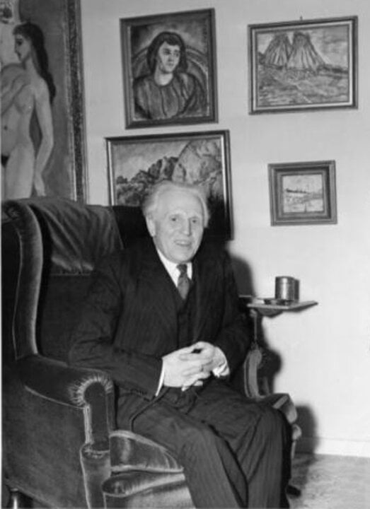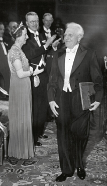 Pär Lagerkvist after receiving his Nobel Prize from Sweden's King Gustaf VI Adolf at the award ceremony in Stockholm, Sweden, on 10 December 1951.