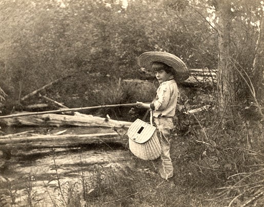 Ernest Hemingway fishing in Horton's Creek, near Walloon Lake, Michigan, July 1904.