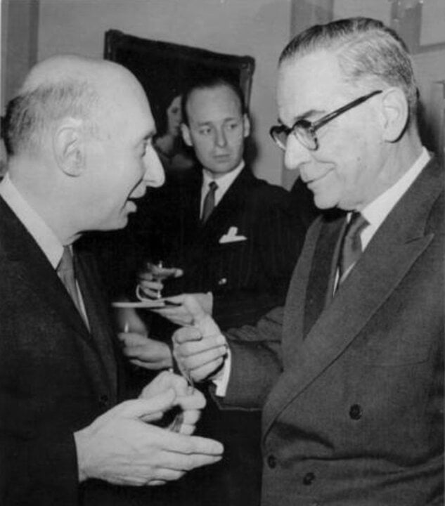 2 (of 2) Georg von Békésy (left) and literature laureate Ivo Andrić during Nobel Week in Stockholm, Sweden, December 1961.