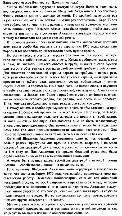 Aleksandr Solzhenitsyn’s speech at the Nobel Banquet at the City Hall in Stockholm, December 10, 1974 (in Russian)