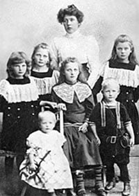 Betty Olofsson with five of her six daughters and only son Harry (standing, foreground).