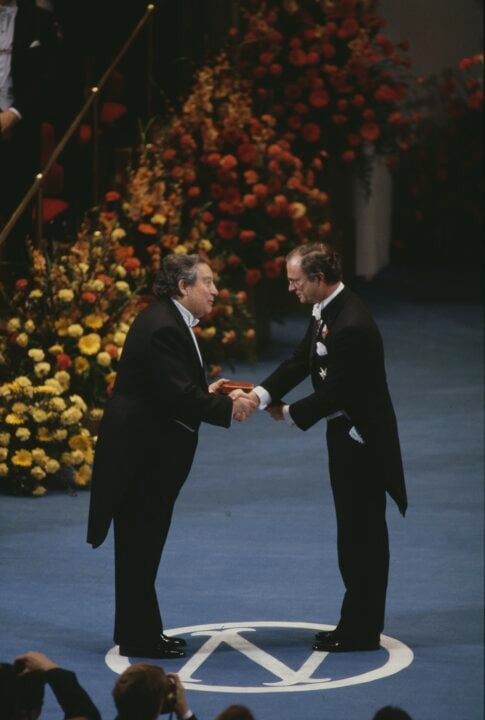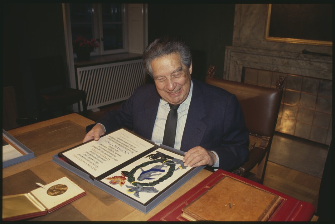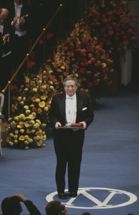 1 (of 17) Octavio Paz receiving his Nobel Prize from H.M. King Carl XVI Gustaf of Sweden at the Stockholm Concert Hall, on 10 December 1990.