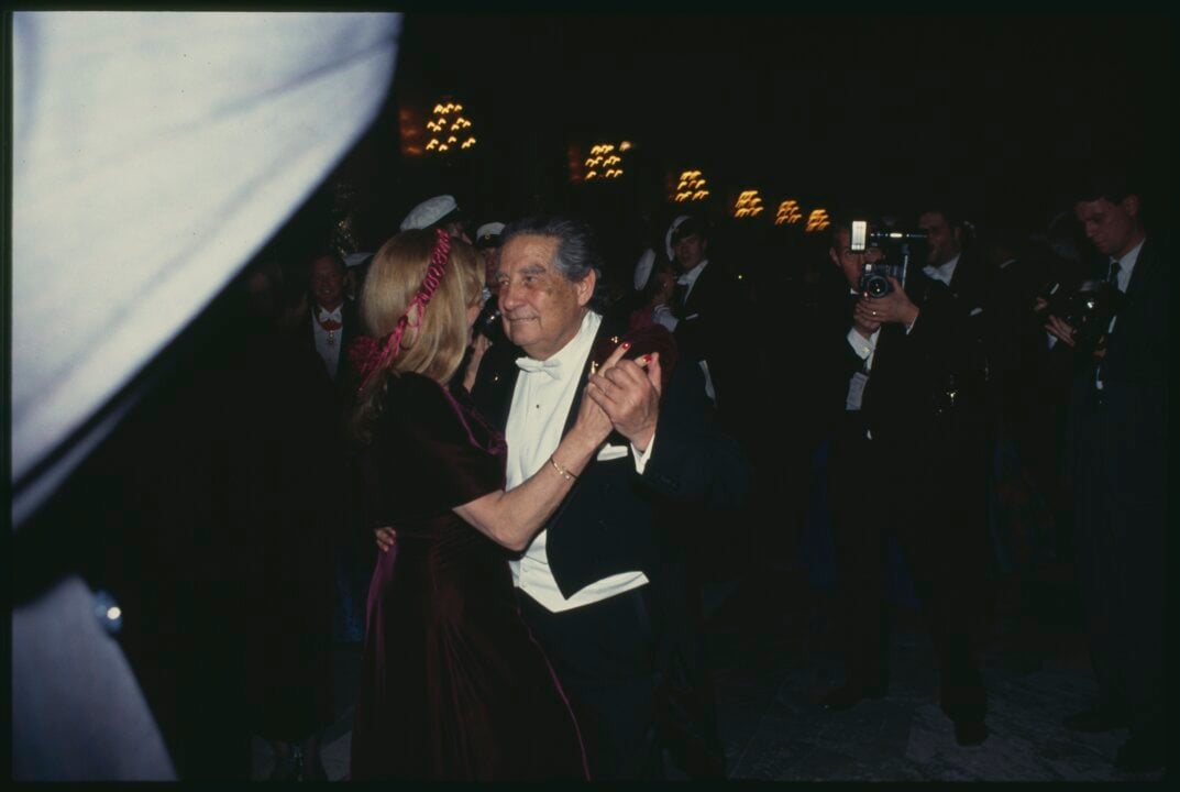 9 (of 17) Octavio Paz and his wife Marie José Tramini de Paz dancing at the Nobel Banquet at the Stockholm City Hall, 10 December 1990.
