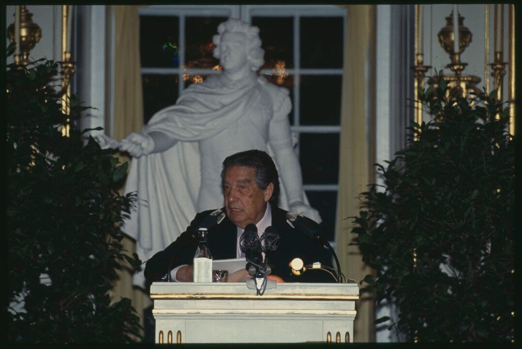 7 (of 17) Octavio Paz delivering his banquet speech at the Nobel Prize banquet at the Stockholm City Hall, 10 December 1990.