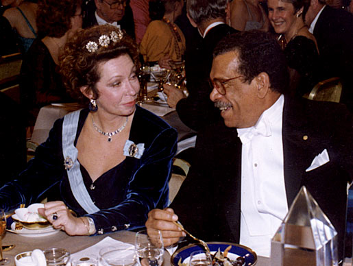 2 (of 13) Derek Walcott after receiving his Nobel Prize from H.M. King Carl XVI Gustaf of Sweden at the Stockholm Concert Hall on 10 December 1992.
