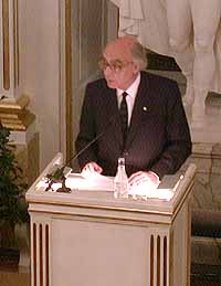 José Saramago delivering his Nobel Lecture.