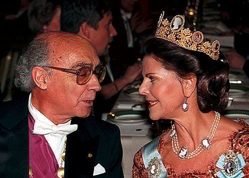 4 (of 6) Queen Silvia (right) and Nobel Laureate in Literature José Saramago (left) at the Nobel Banquet in Stockholm, on 10 December 1998.