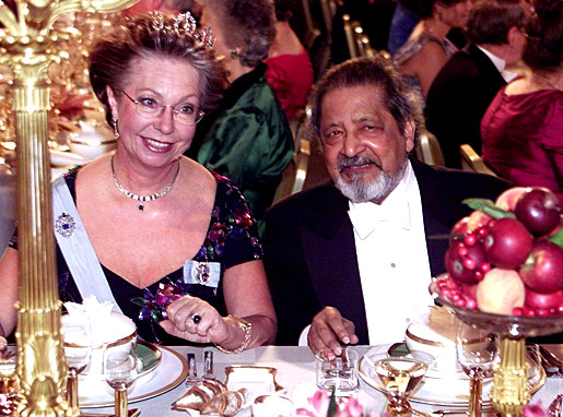 V. S. Naipaul and Swedish Princess Christina during the Nobel Banquet, 10 December 2001.