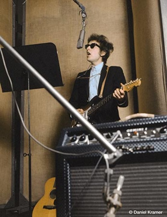 2 (of 5) Bob Dylan recording his first electric songs for the Bringing It All Back Home album. Columbia Records, Studio A, New York City, January 1965.