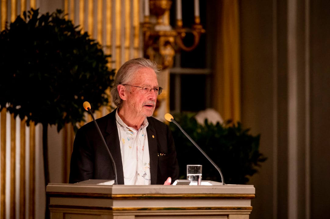5 (of 9) Peter Handke delivering his Nobel Lecture in Literature at the Swedish Academy in Stockholm on 7 December 2019.
