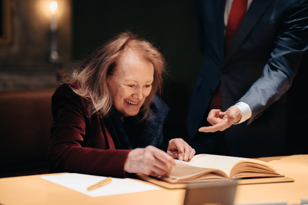 7 (of 20) Annie Ernaux visits the Nobel Foundation on 13 December 2022 and signs the guest book.