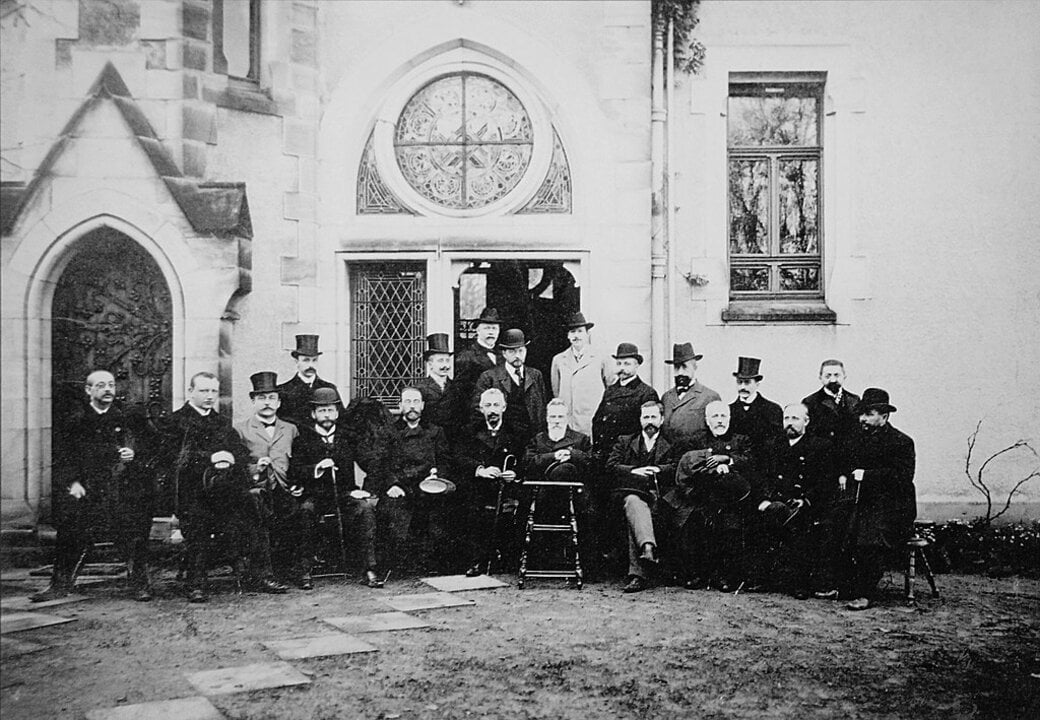 2 (of 3) Emil von Behring (back row, fourth from left) with international tuberculosis researchers in front of his Schlossberg laboratory in Marburg on 28 October 1902