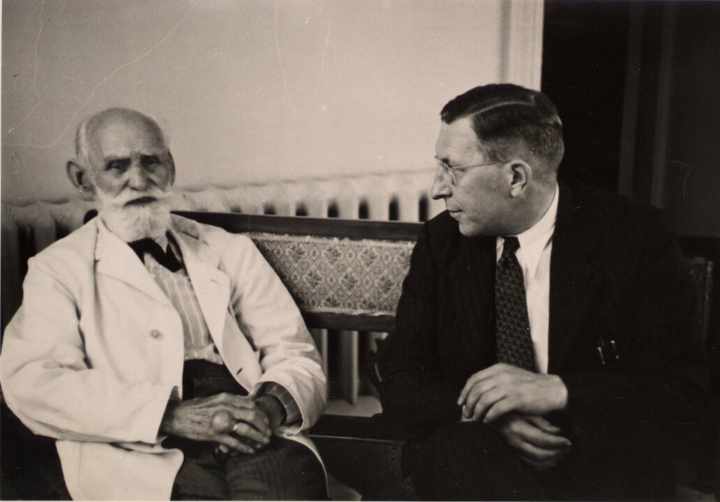 Sir Frederick G. Banting (right) visiting medicine laureate 1904 Ivan Pavlov (left) in his home near Leningrad on 28 June 1935. Banting travelled to Leningrad in 1935 to attend the 15th International Physiological Congress.