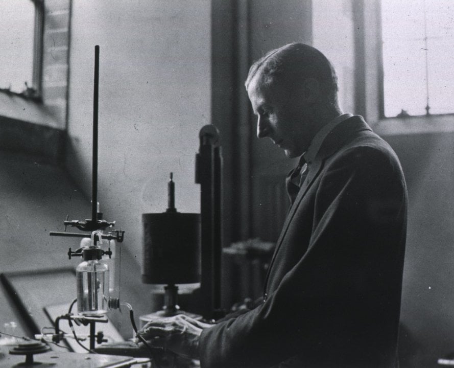 2 (of 2) Edgar Adrian in the laboratory. Photo taken ca 1920.