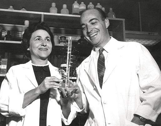 6 (of 7) Arthur and Sylvy Kornberg in the Stanford laboratory, ca 1960.