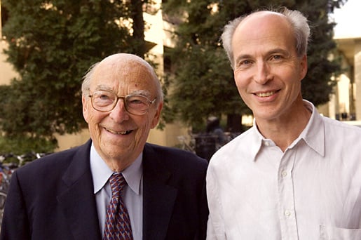 3 (of 7) Nobel Laureate Arthur Kornberg (left) with his son Roger Kornberg, who was awarded the Nobel Prize in Chemistry 2006.