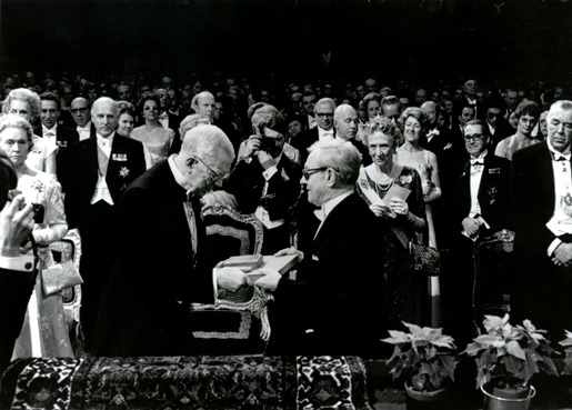 Julius Axelrod receiving his Nobel Prize from His Majesty King Gustaf VI Adolf of Sweden at the Stockholm Concert Hall, 10 December 1970.