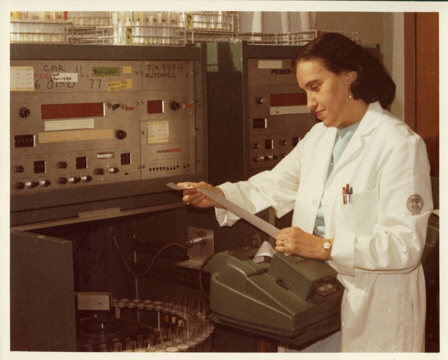2 (of 2) Rosalyn Yalow in her lab at the Bronx VA Medical Center.