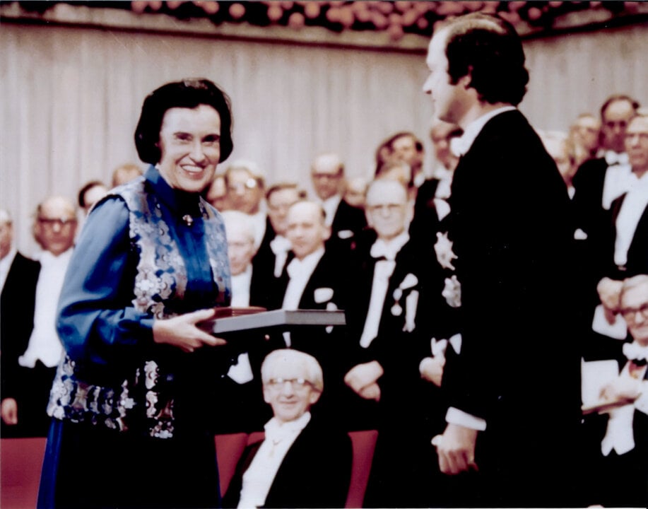 1 (of 2) Rosalyn Yalow receives the Nobel Prize in Physiology or Medicine 1977 from King Carl XVI Gustaf of Sweden.
