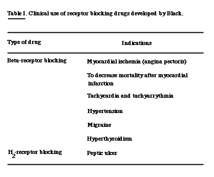 The clinical use of the principles for drug treatment discovered by Black are summarized in Table I.