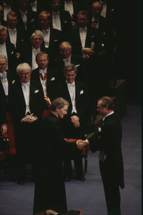 1 (of 17) Christiane Nüsslein-Volhard receiving her Nobel Prize from H.M. King Carl XVI Gustaf of Sweden at the Stockholm Concert Hall on 10 December 1995.