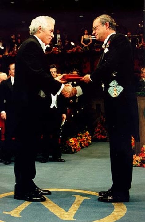1 (of 12) Stanley B. Prusiner receiving his Nobel Prize from the hands of His Majesty the King.