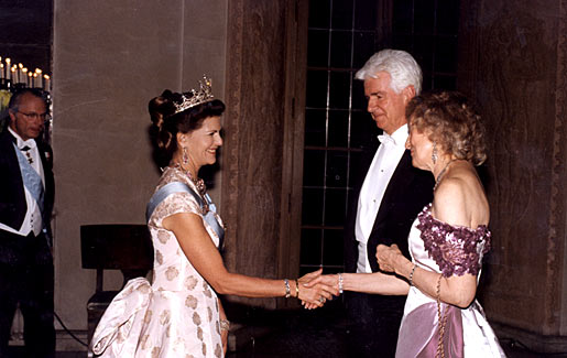 5 (of 5) Her Majesty Queen Silvia and Nobel Laureate Günter Blobel with wife at the Nobel Banquet. Copyright © The Nobel Foundation 1999